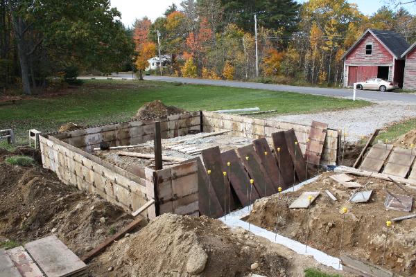 | Footings are poured and the frost walls forms start to go up |