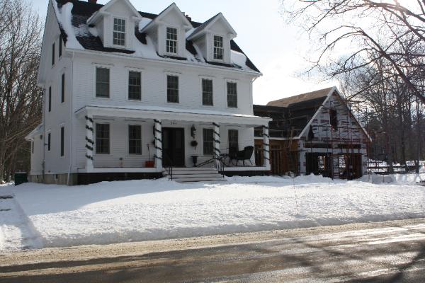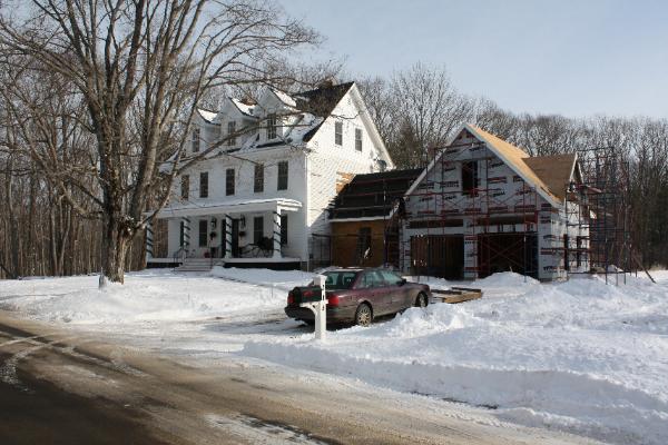 The roof starts to get shingled in between all the snow storms. Soon we hope to see