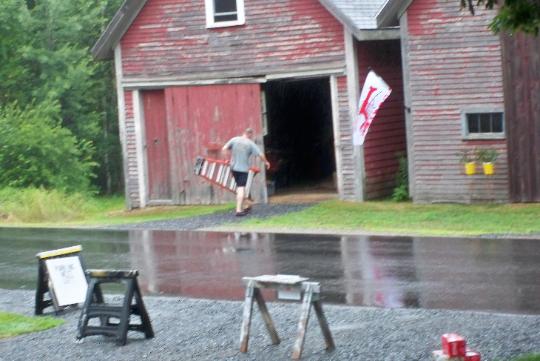 | Sunday arrives and so does the rain but the party most go on and so the set up continues |